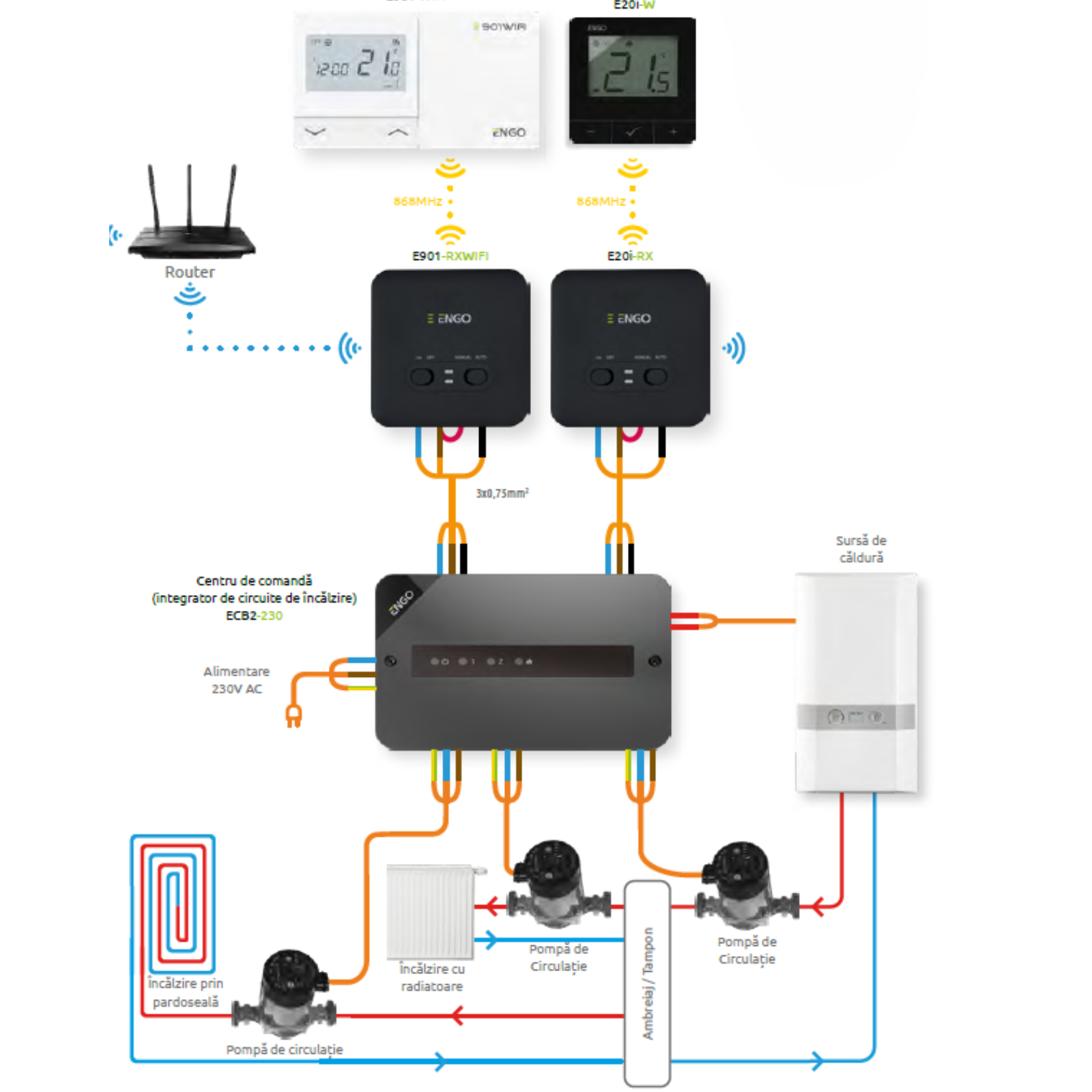 Termostat E20i control de la distanta prin internet, WI-FI, fara fir